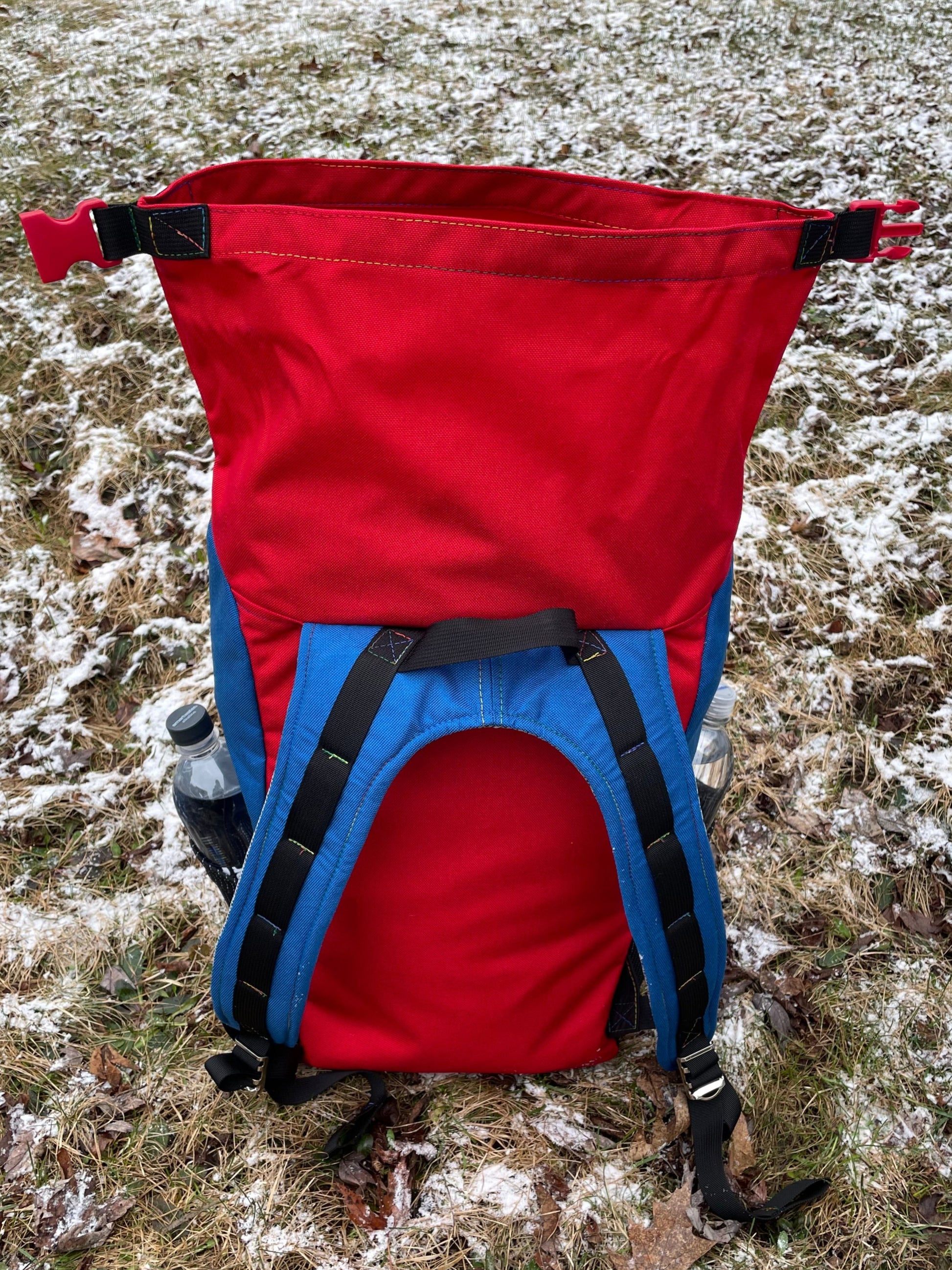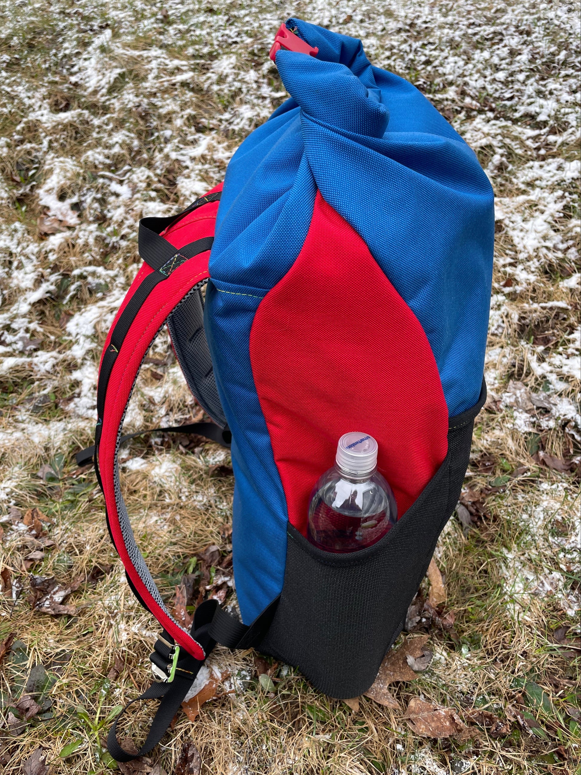- blue straps with blue side panels and red front/back